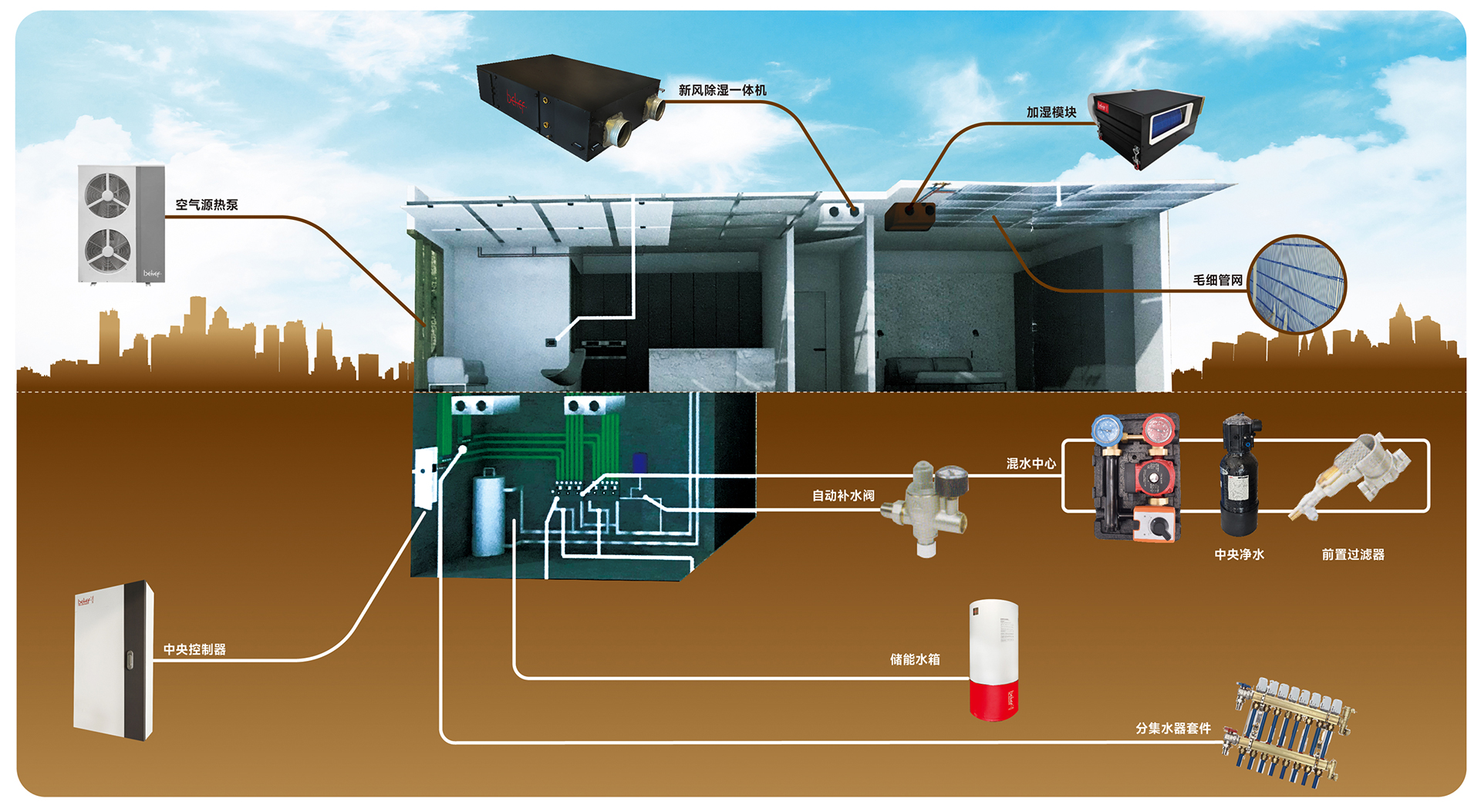 倍里弗之所以在五恒系统前加入建筑二字,就是我们考虑到系统脱离开建筑本体的保温性和气密性去谈恒定,几乎无从谈起,因为建筑本体的外围结构冷热损失系数不达标,单纯的向设备索取COP是不科学的,所以倍里弗的发展路径是,五恒系统一定是建立在建筑本体之上的。